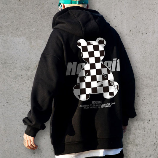 チェッカーベアプリントパーカー U2494