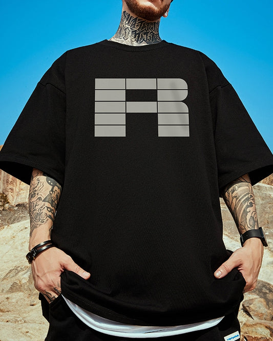 ブラックアウトロゴデザイン半袖Tシャツ U2142