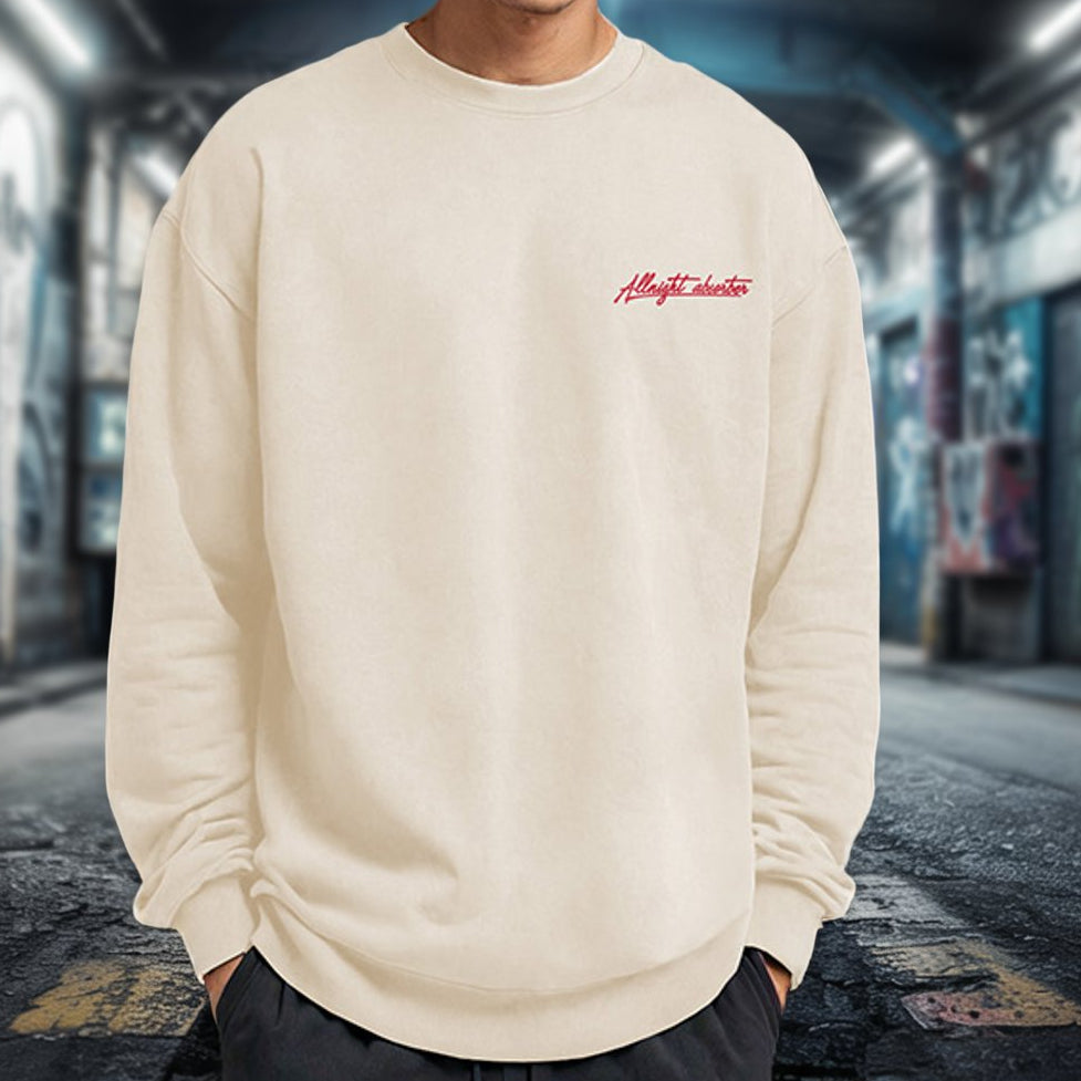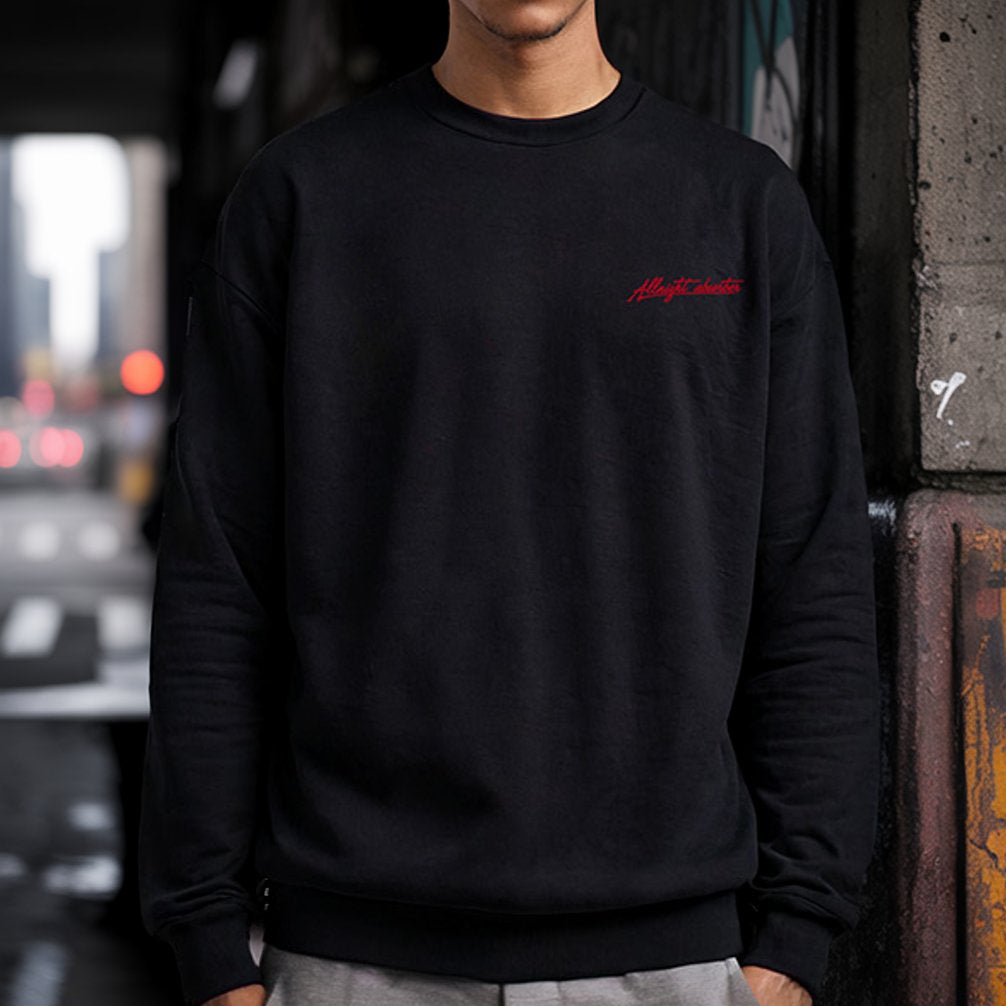 落ち着いたボディに、手書き風レタリングを配置したクルーネックスウェットです。