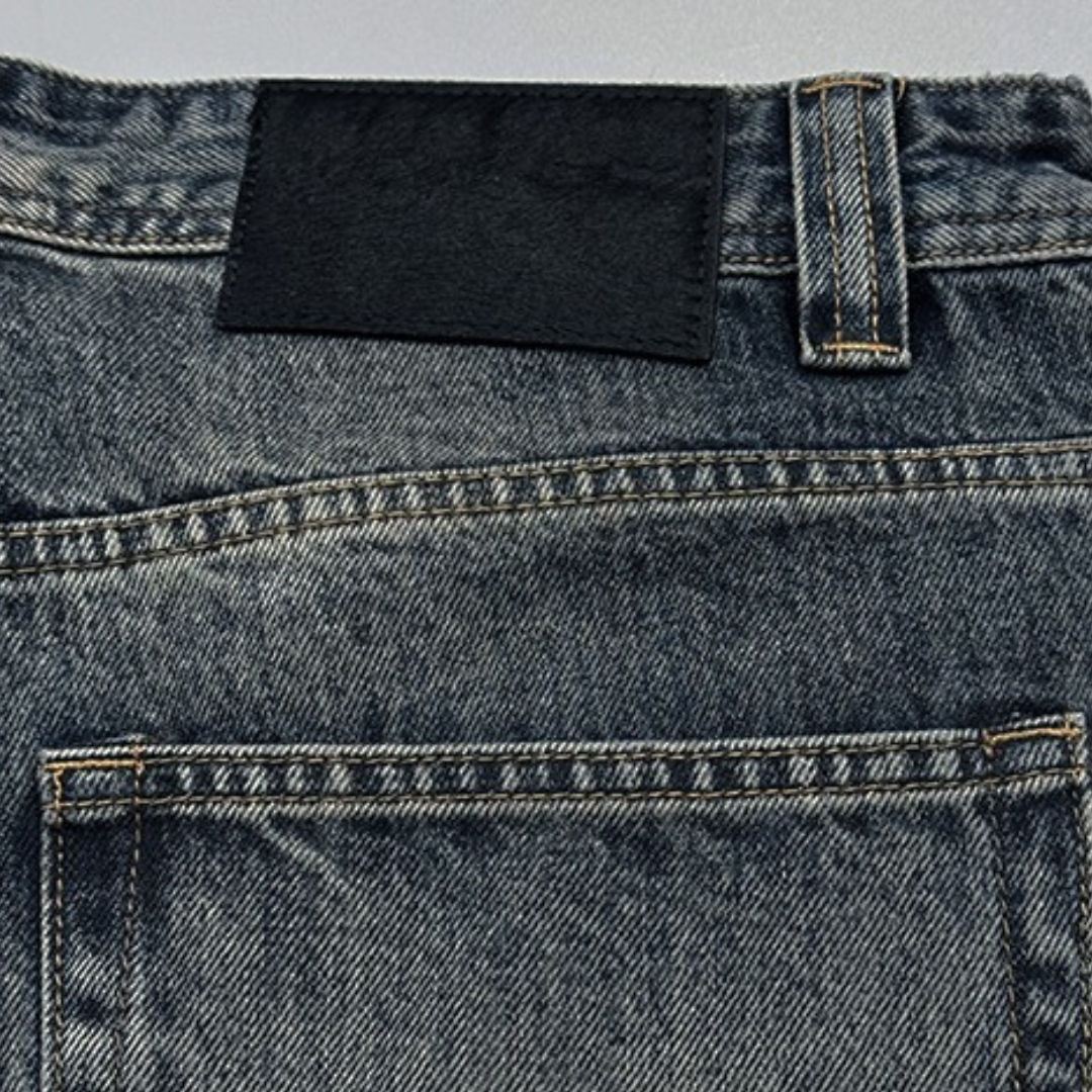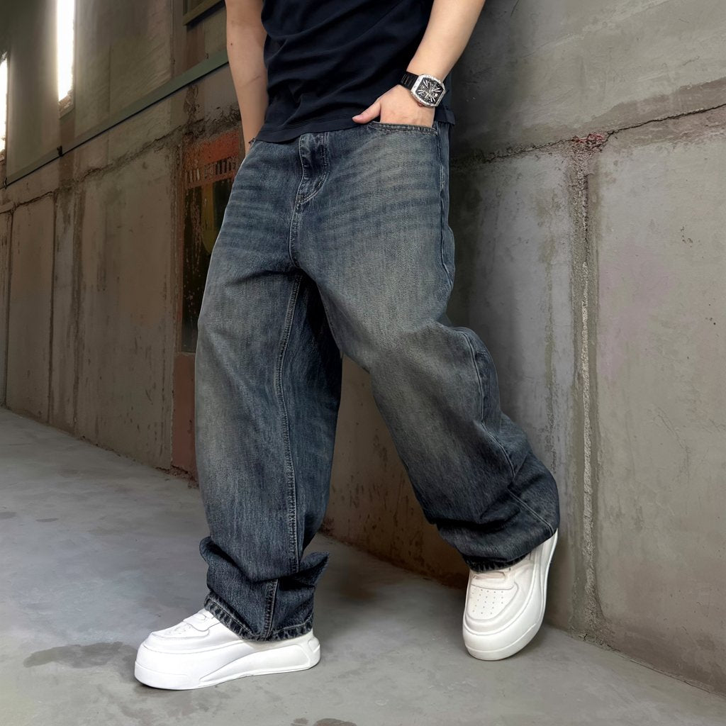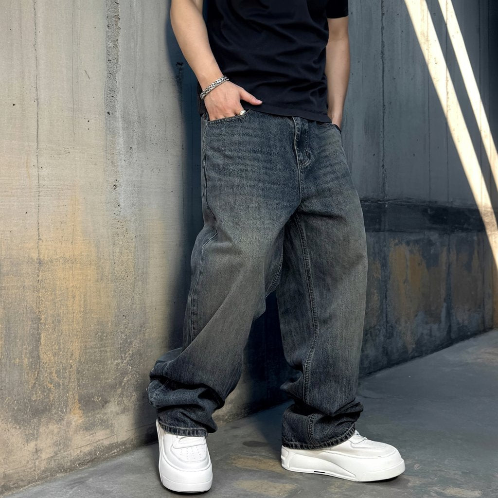 無骨なワイドシルエットに、深みのあるフェードウォッシュが映えるデニムパンツ。