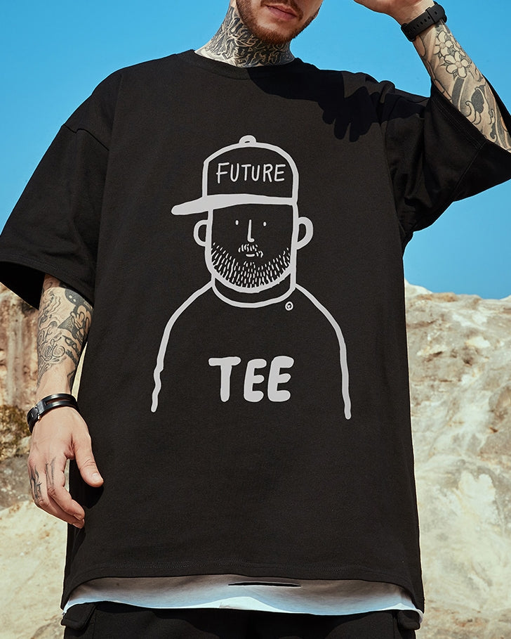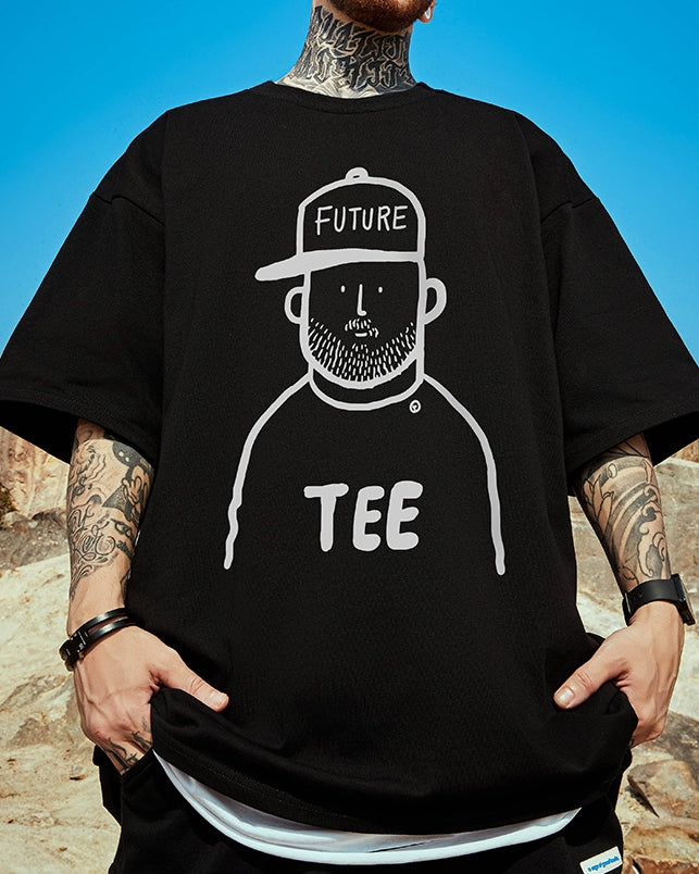 コミカルフェイスプリント半袖Tシャツ U2176