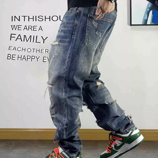 【OUTLET/即納】ワイドシルエットダメージデニムジーンズ U2361