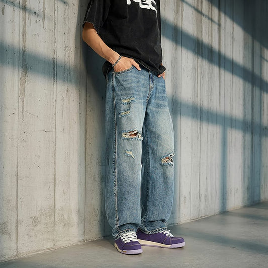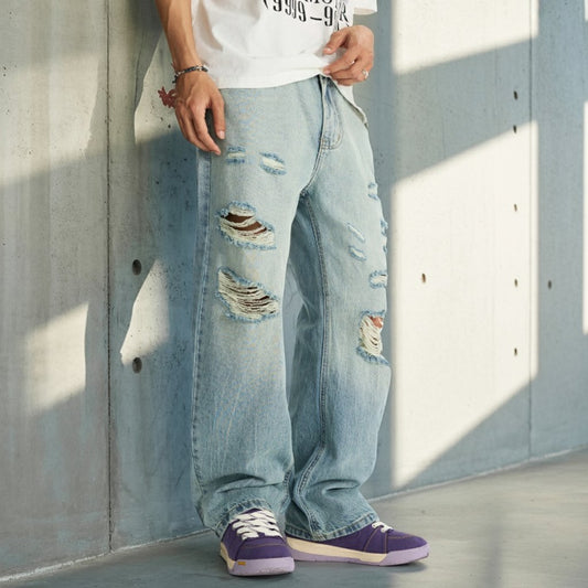 【OUTLET/即納】ワイドシルエットダメージデニムジーンズ U2361