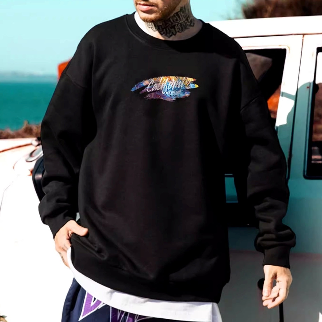 ヒップホップバックプリント長袖スウェット U1903