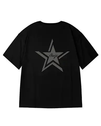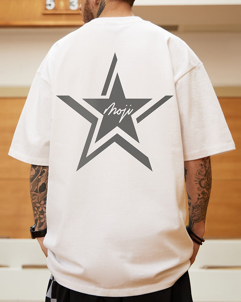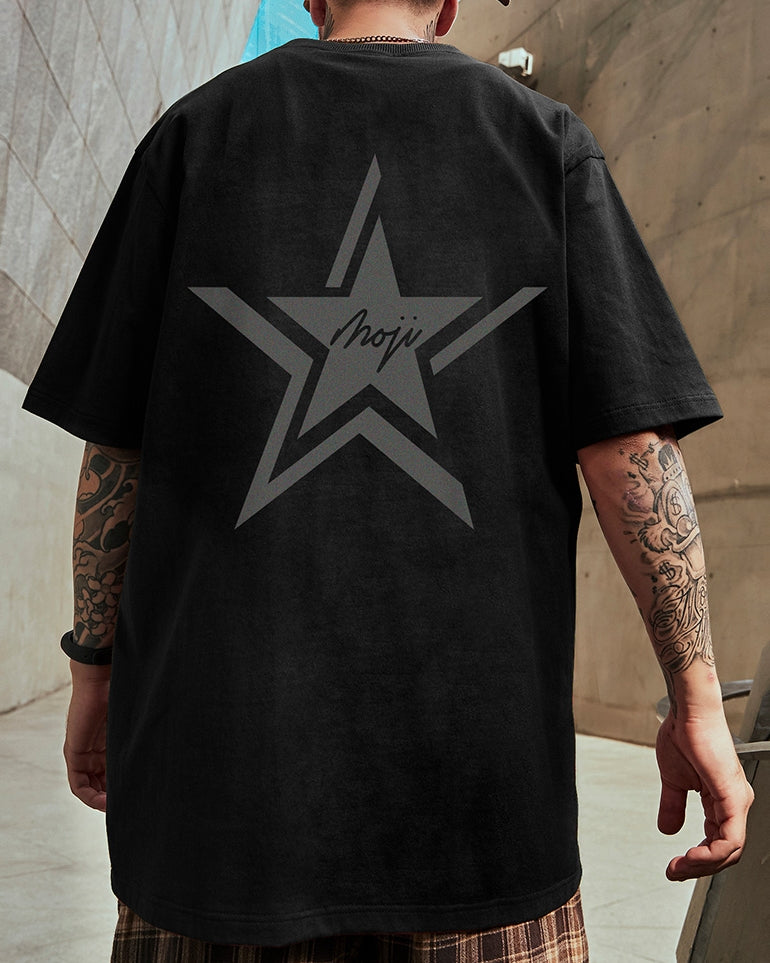 モノトーンスターアートプリント半袖Tシャツ U2255