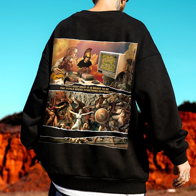 ペインティングバックプリント長袖スウェット U1904