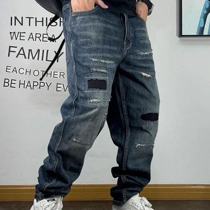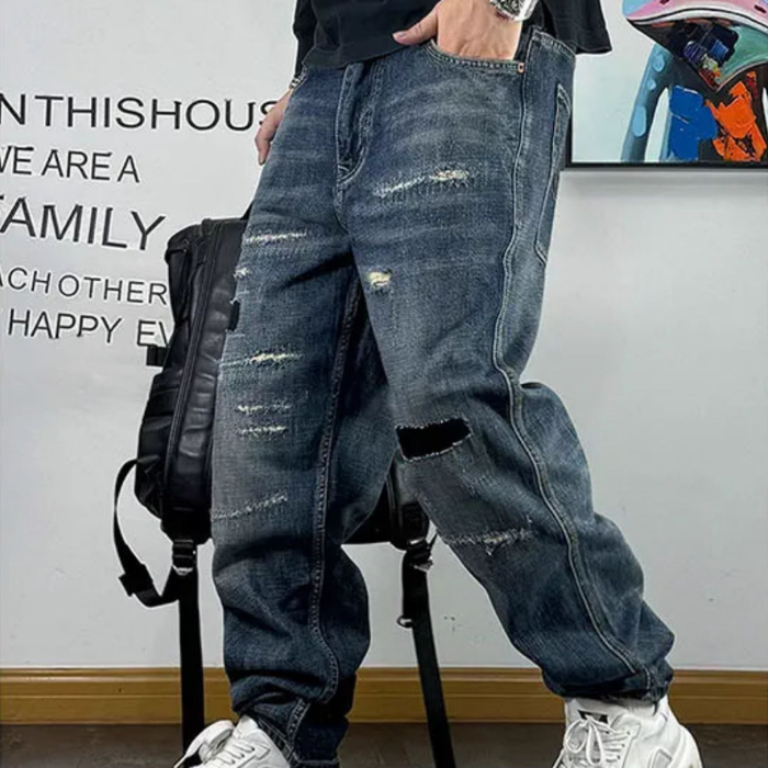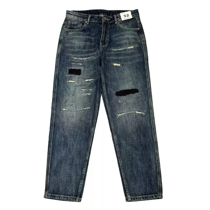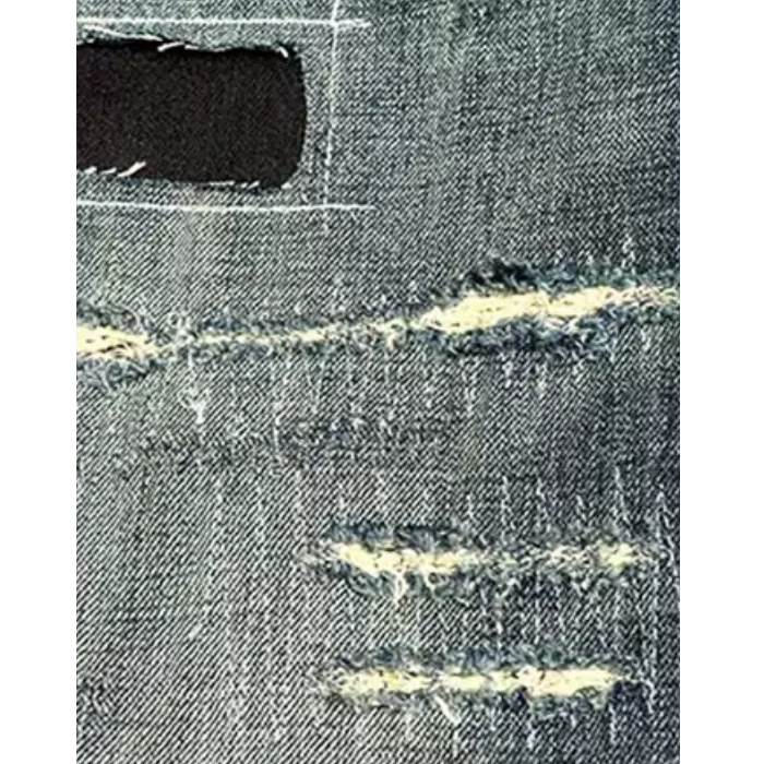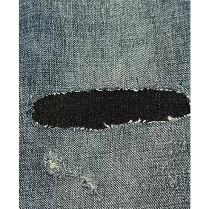 ヴィンテージ感漂うリペア加工とダメージが融合した存在感あるデニム。