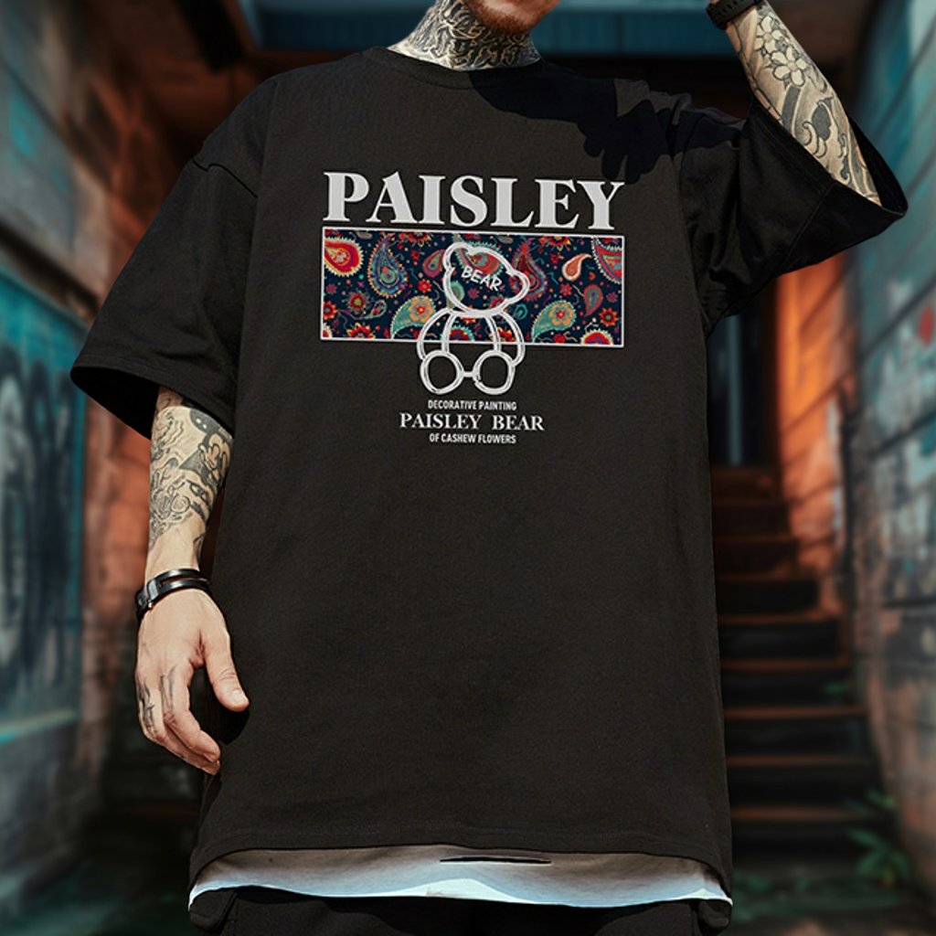 ペイズリーベアグラフィック半袖Tシャツ U2188