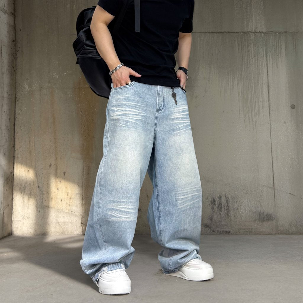 ゆったりとしたシルエットに、淡いウォッシュが映えるワイドデニムパンツ。