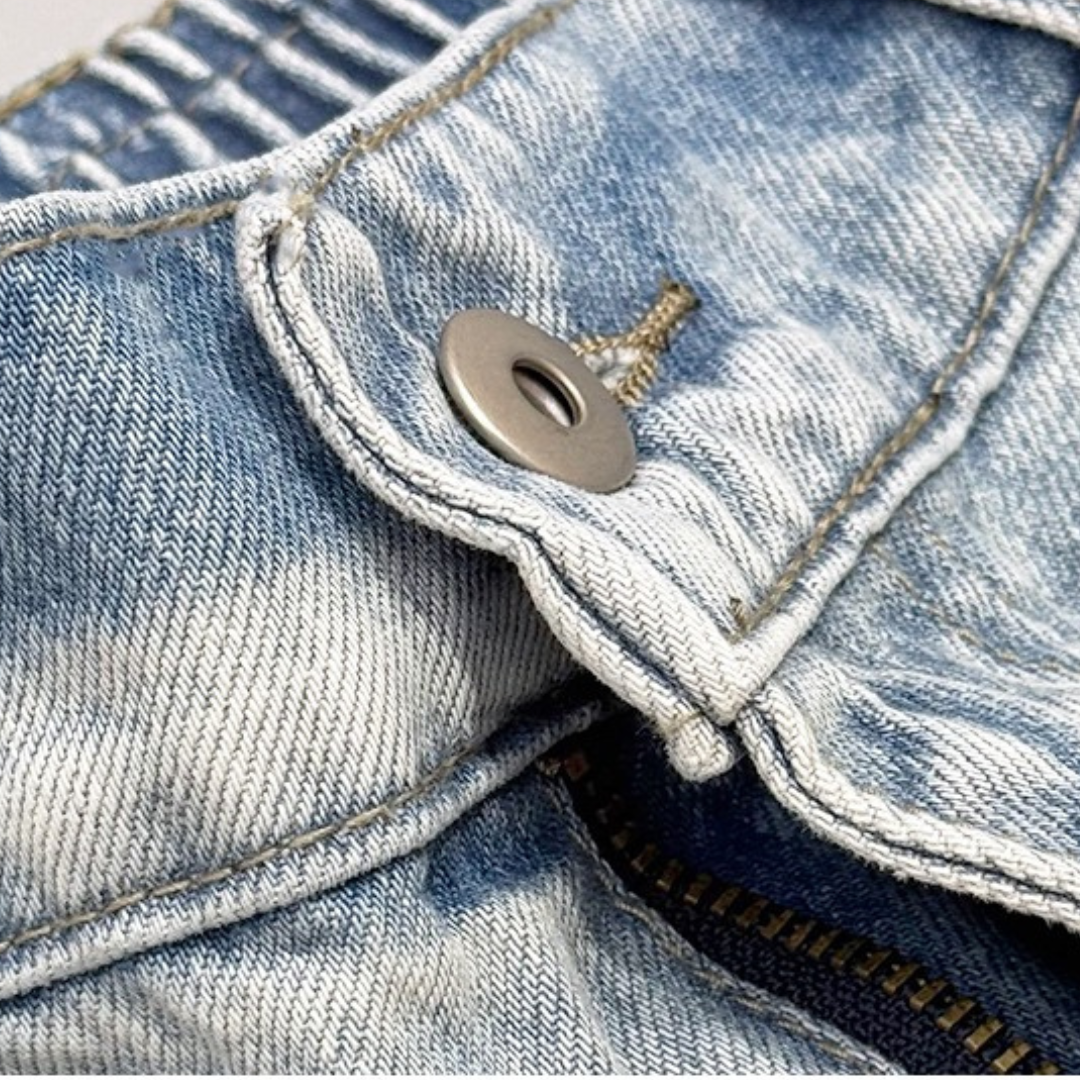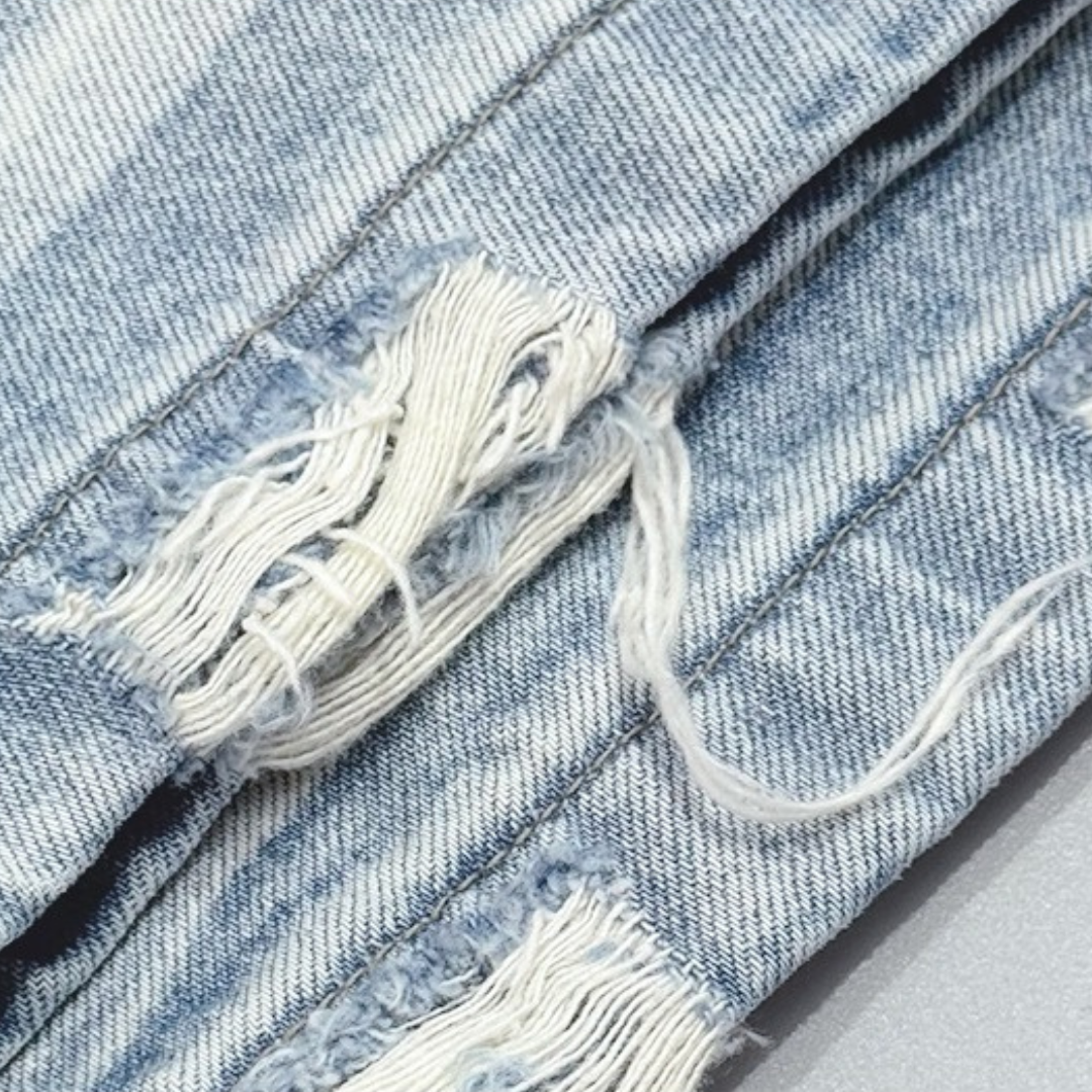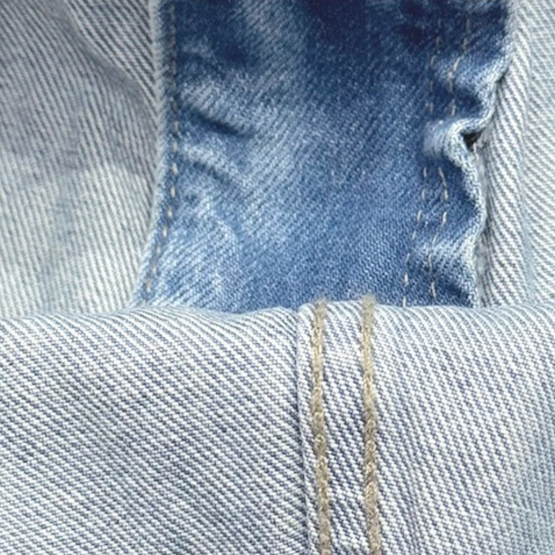 程よいフェード感とヒゲ加工が、こなれたヴィンテージムードを演出します。