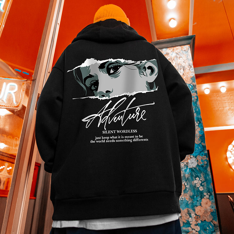 フェイスイラストバックプリントパーカー U1746