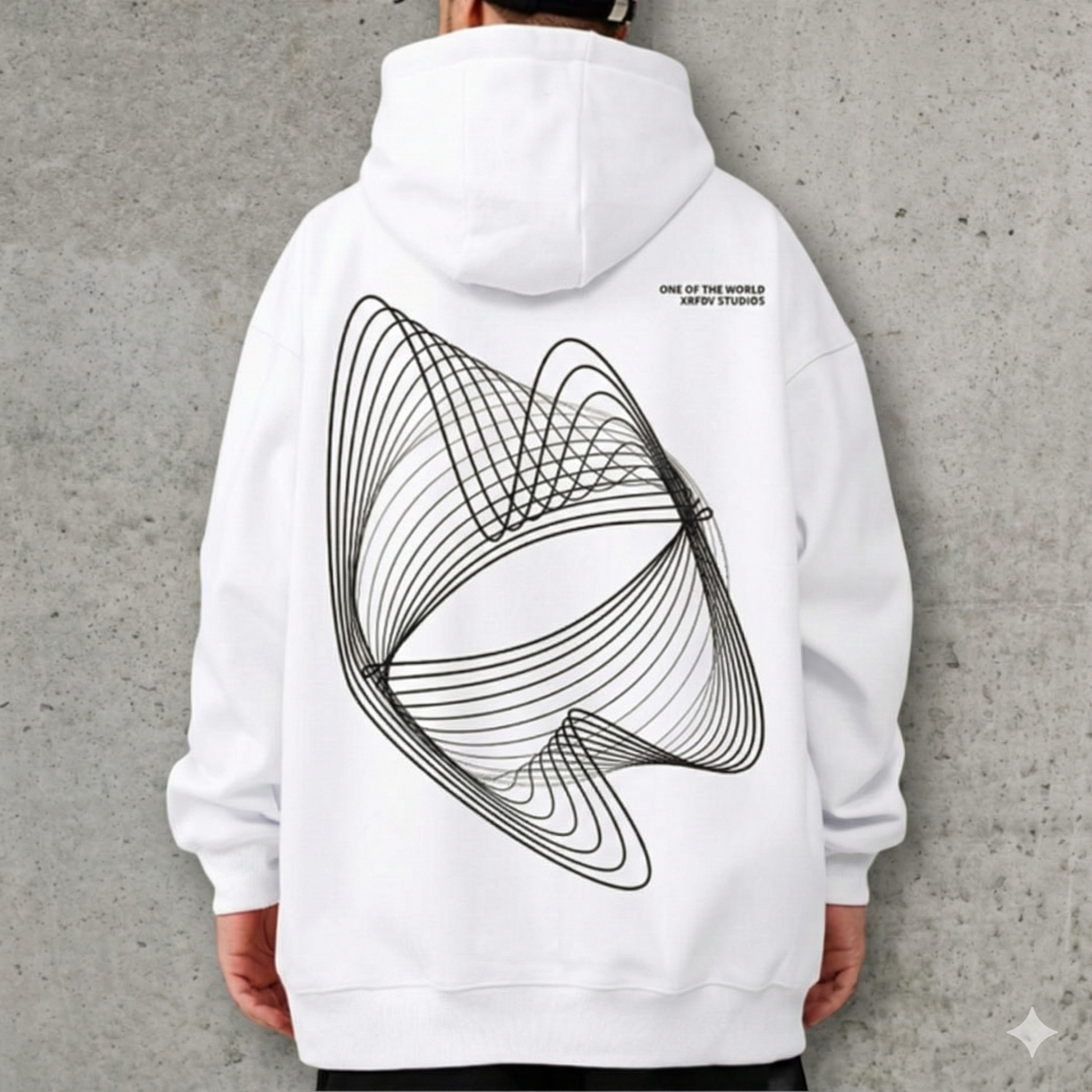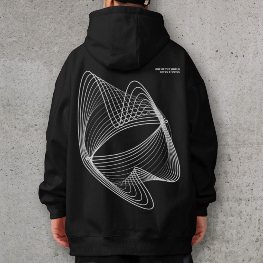 ゆとりのあるボディに、背面へ大きく配したラインアートグラフィックが印象的なプルオーバーパーカー。