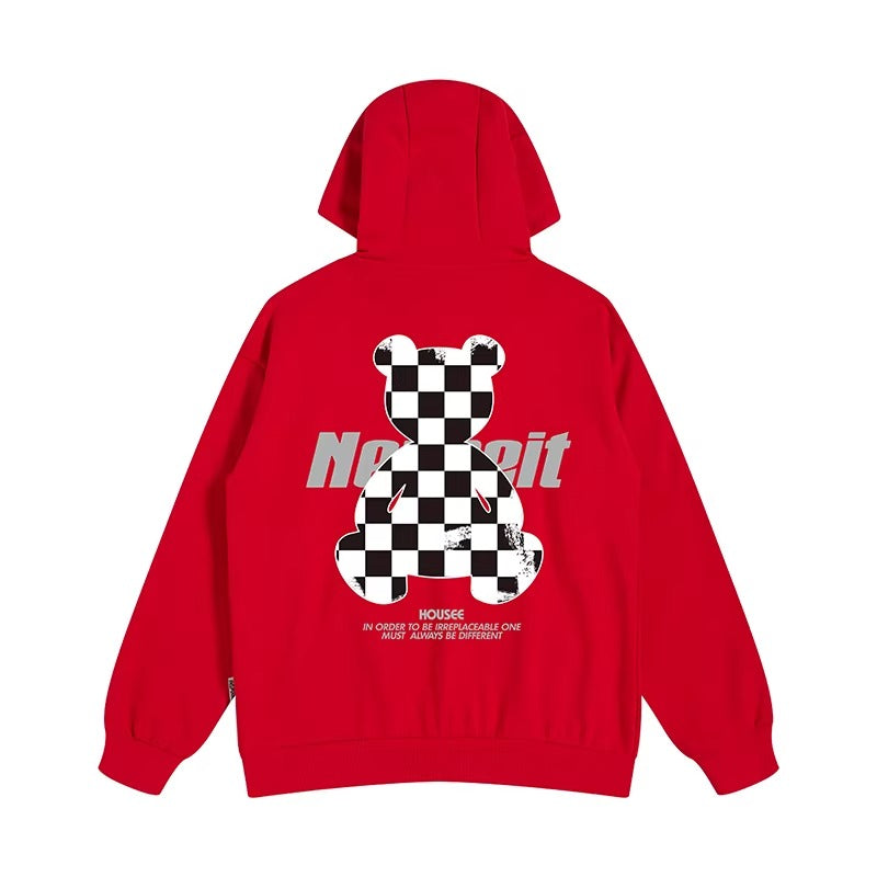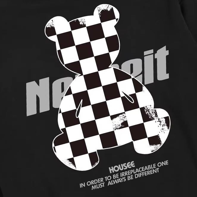 チェッカーベアプリントパーカー U2494