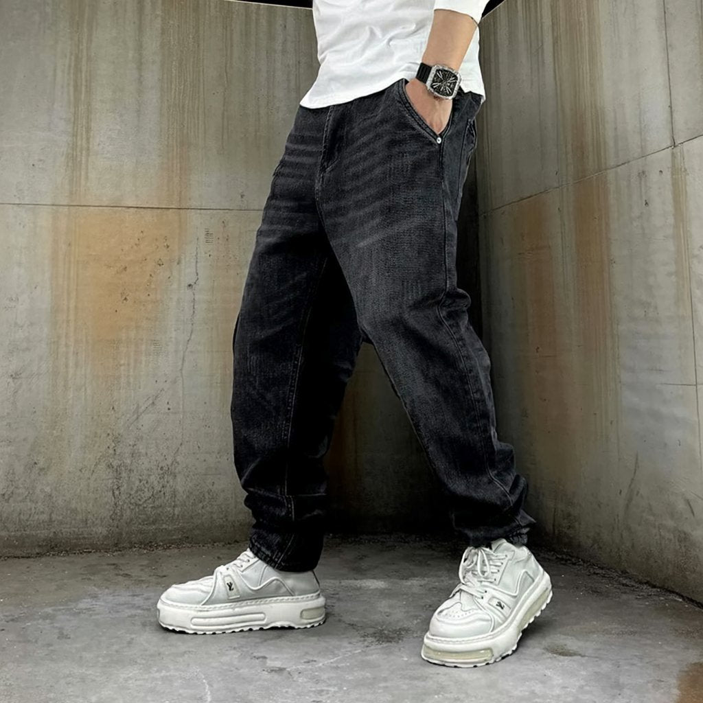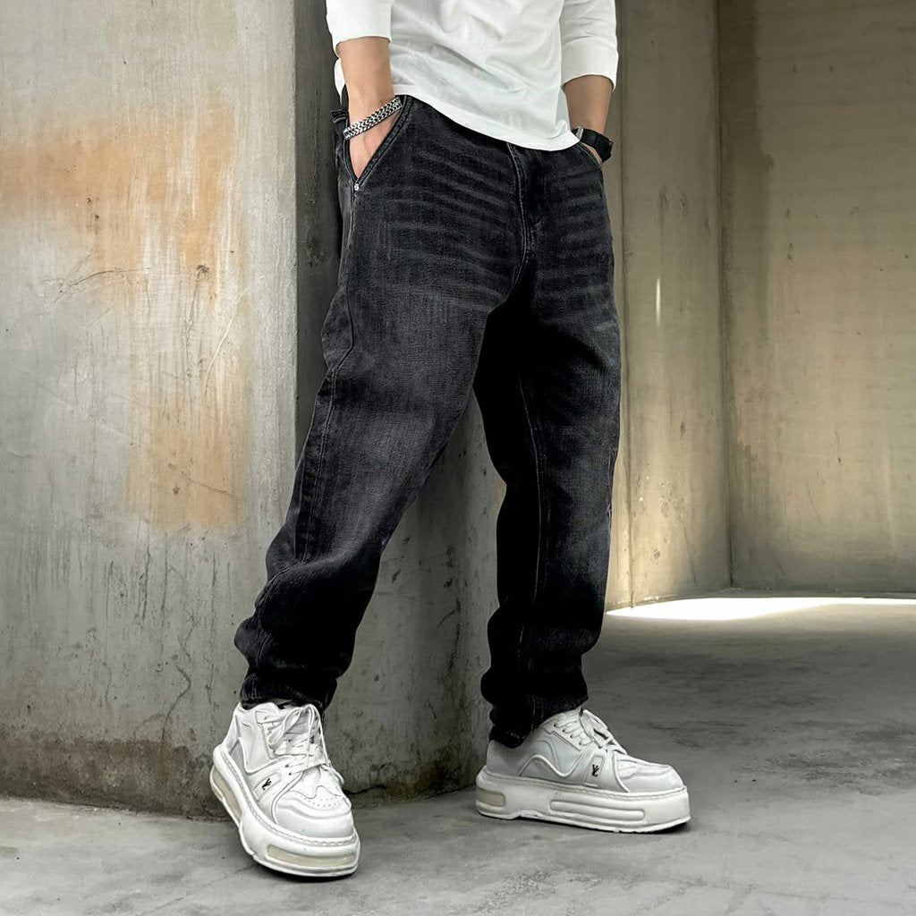 ゆったりとしたルーズシルエットに、自然なウォッシュ加工が映えるデニムパンツ。