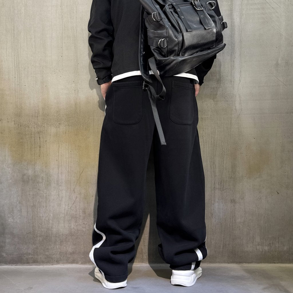 全体にゆとりを持たせたワイドシルエットに、縦のラインを効かせたデザインのワイドパンツ。
